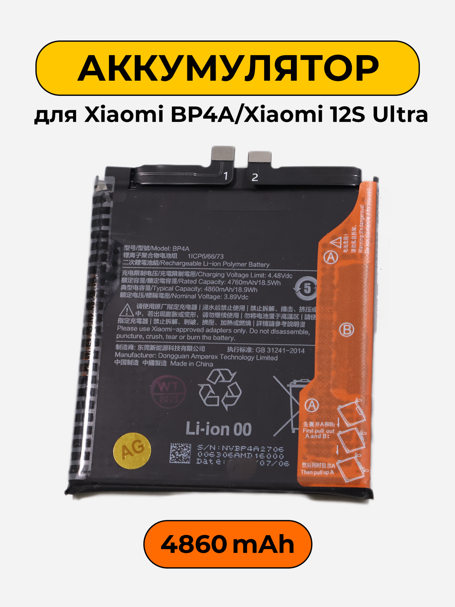 Аккумулятор для Xiaomi BP4A предназначен для обеспечения надежной работы смартфона Xiaomi 12S Ultra. С емкостью 4860mAh, он обеспечивает достаточное количество энергии для продолжительного использования устройства, что делает его важной частью вашего смартфона. Замените устаревший или неисправный аккумулятор на новый, чтобы гарантировать стабильную работу и сохранить производительность устройства на высоком уровне.
