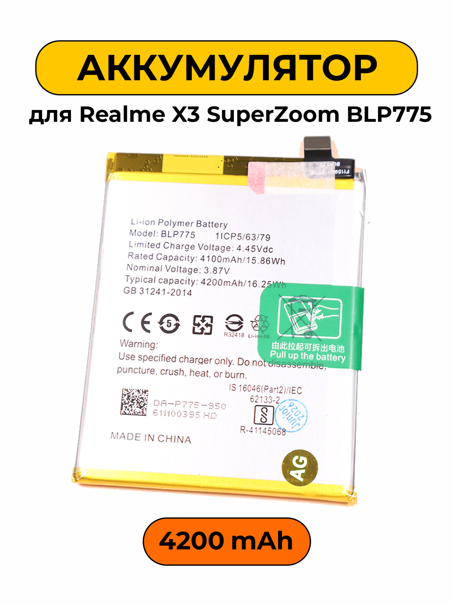 Аккумулятор для Realme X3 SuperZoom BLP775 с емкостью 4200mAh обеспечивает надежное и длительное питание вашего устройства. Это важная деталь, которая позволяет вашему смартфону работать на максимальной производительности, обеспечивая долгий срок службы без необходимости частой подзарядки.